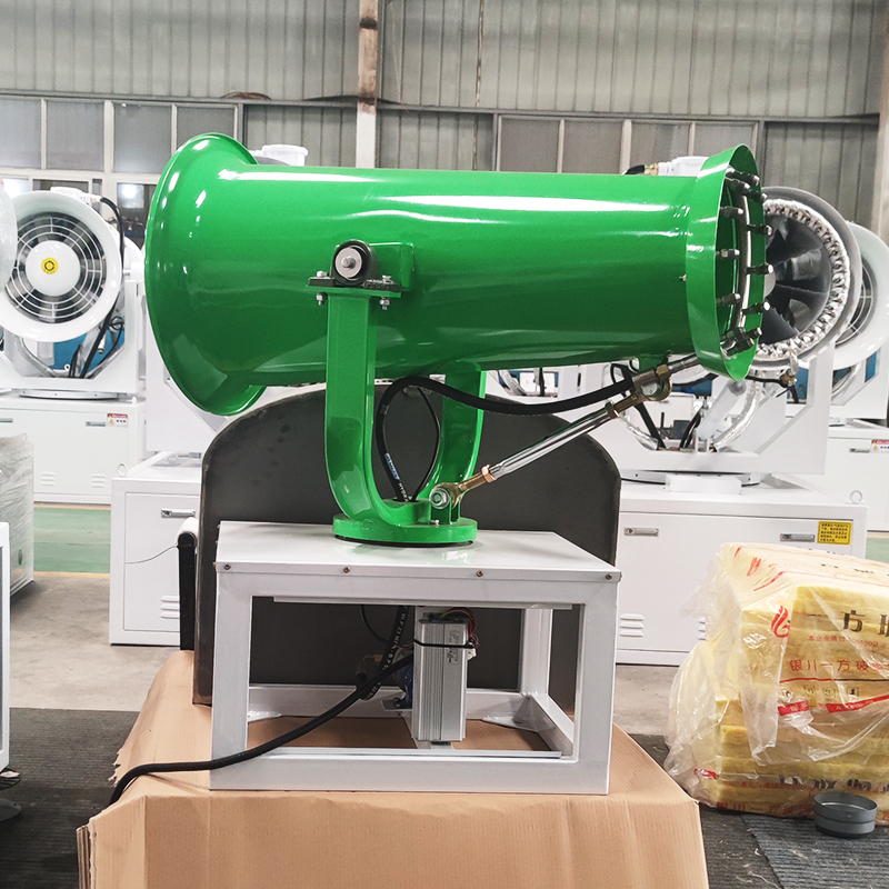 Fog cannons are very common in daily life, and the rear of the dust suppression vehicle for removing haze and reducing dust on urban streets is the main body of the fog cannons. The fog cannon transforms into water droplets of the same size as dust through high-pressure water mist. Due to the similarity or similarity between water droplet particles and dust particles, dust particles become moist during the airflow process and come into contact with water droplet particles. The wetted dust particles continue to adsorb other dust particles and gradually form particle clusters, sinking due to their own weight increase.