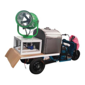 The tricycle fog cannon is mainly used for spraying atomized water, cleaning and disinfecting urban roads and public places.