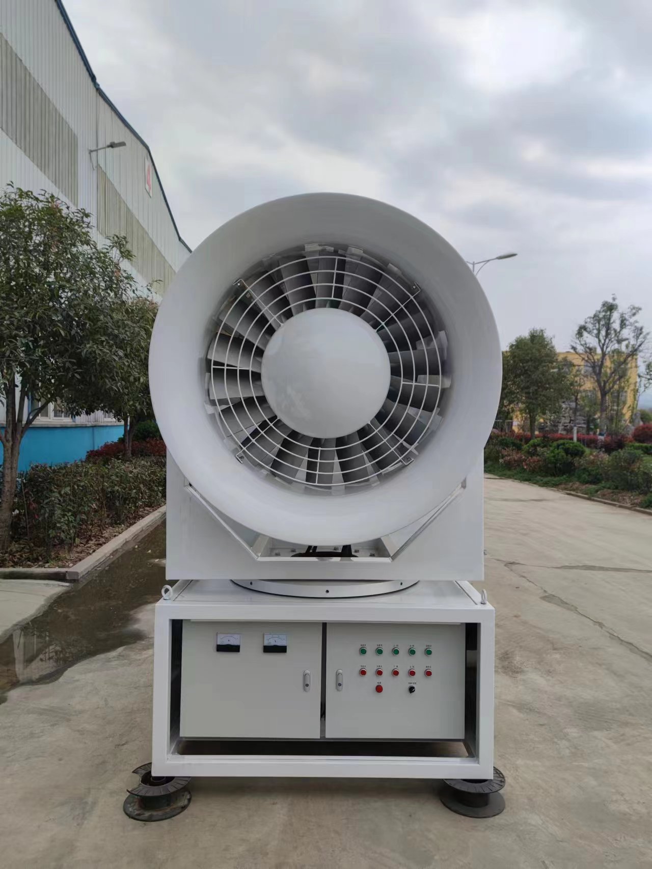 1. Rotating left and side from 0-180°, pitch angle 0-30° which ensures the fog cannon can cover a wide area.
