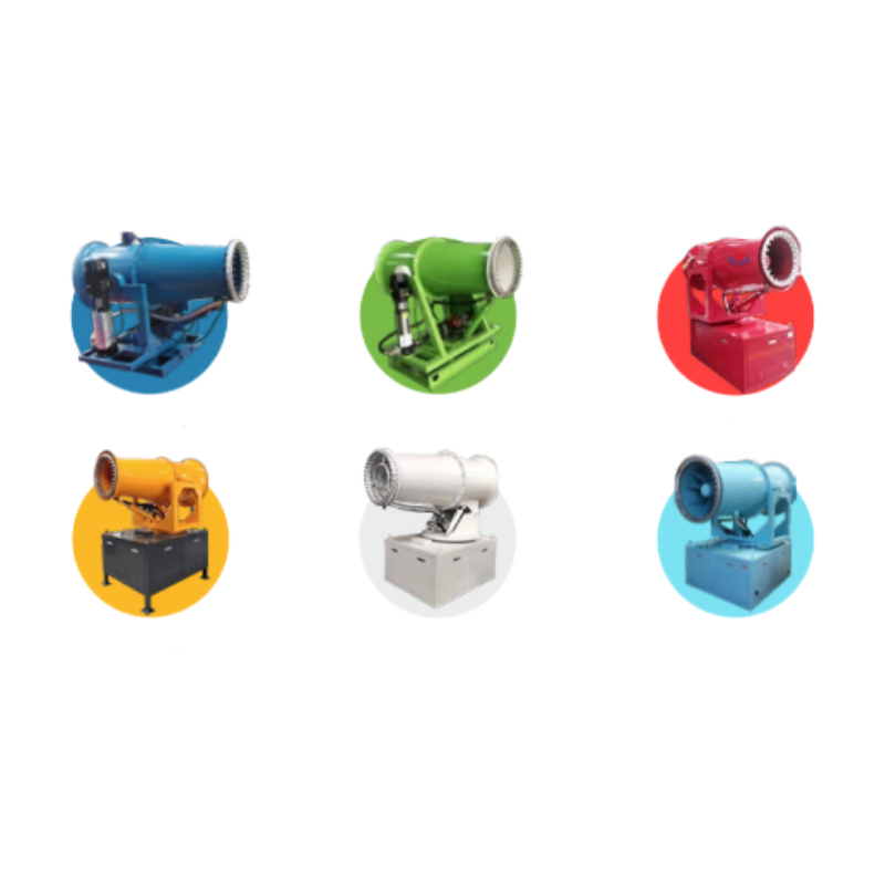 The spray gun atomizes water mist with small particle sizes. With a large contact area with air and high evaporation rate, it can quickly saturate the water vapor in dusty areas, meeting the requirements for improving the wettability of inhalable dust. The fog cannon, also known as air supply spray dust suppression device, can effectively control haze and reduce the content of particles in the air.