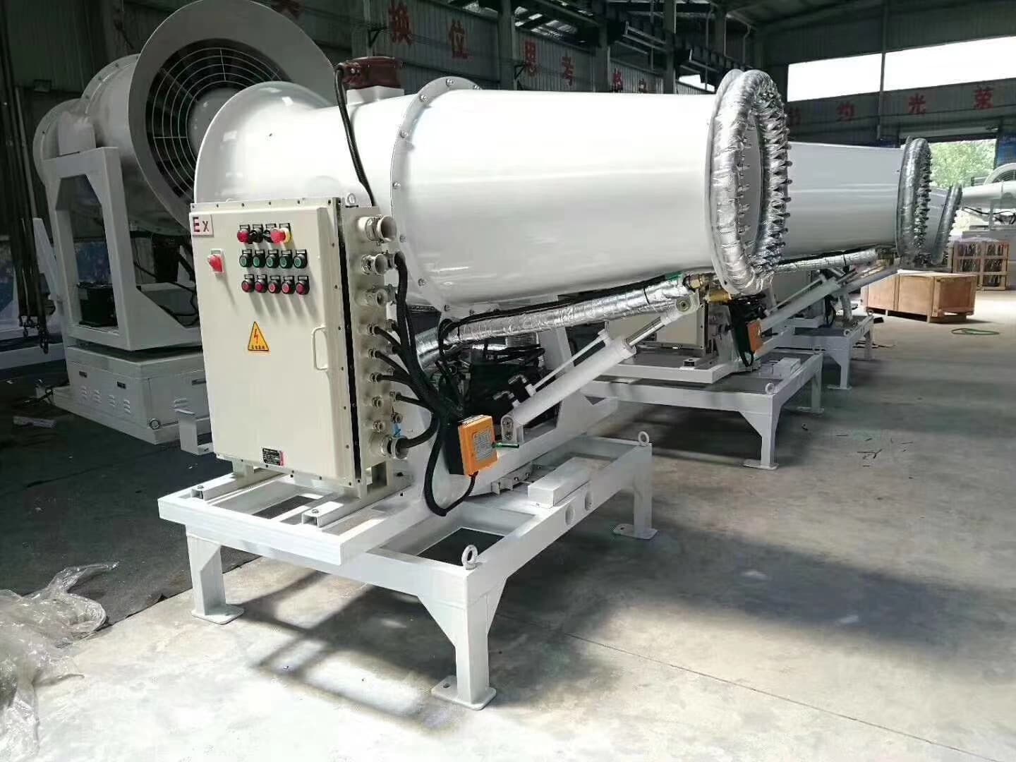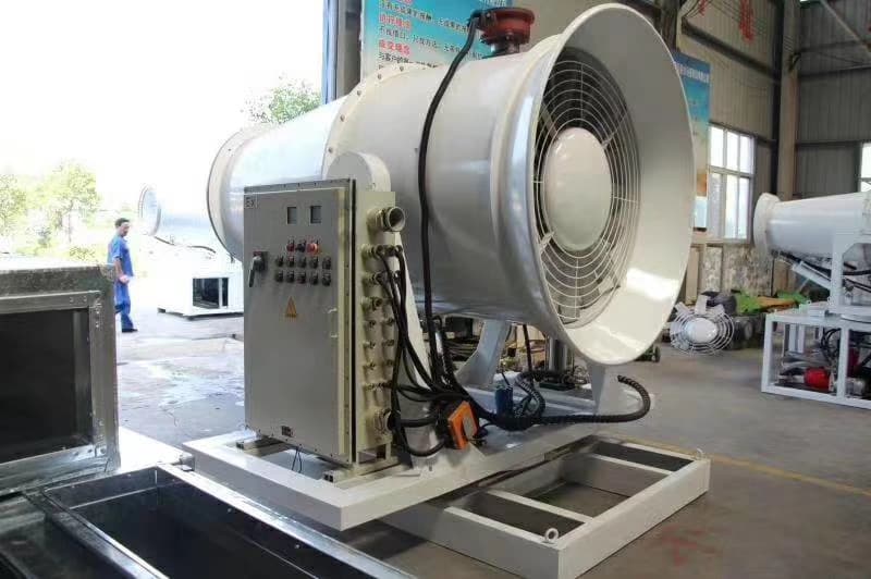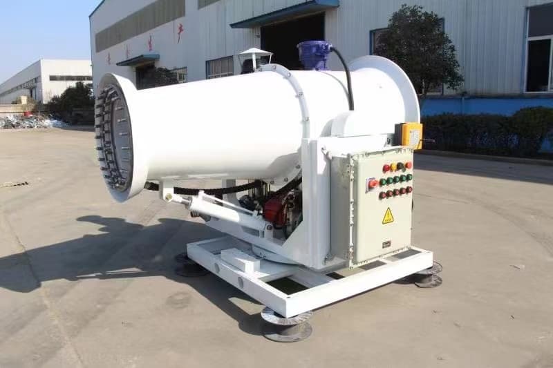 Fog cannons are mostly used for dust removal in urban streets, construction sites and coal yards. The principle of the fog cannon is to apply pressure to the water through high pressure to become particles similar to the dust in the air, absorb the dust in the air, and decrease after the weight increases. It also humidifies the air and lowers the temperature.