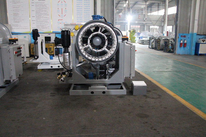 3) The barrel support adopts U-shaped slewing bearing, the left and right rotation angle is large and accurate.
