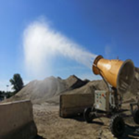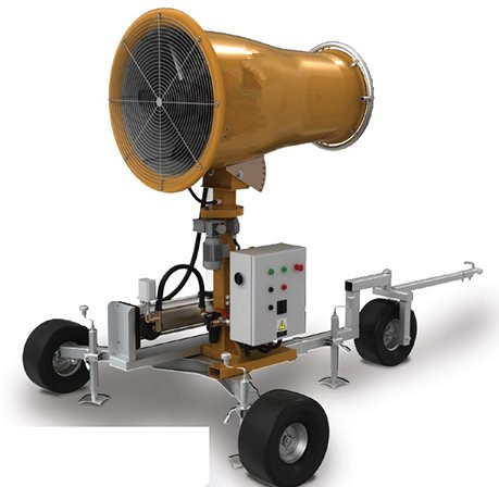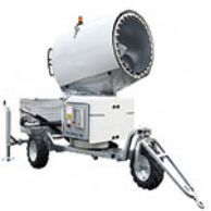 Fog cannon is also known as air-supplied spray dust suppression device, sprayer, Disinfection and antifreeze, etc. It is mainly composed of motor, high-pressure fan, horizontal rotation device, elevation control device, guide tube, atomizing nozzle, high-pressure water pump, water storage tank and control system, etc.
